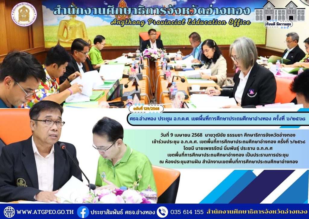 วันที่ 9 เมษายน 2568 นายวุฒิชัย ธรรมยา ศึกษาธิการจังหวัดอ่างทอง เข้าร่วมประชุม อ.ก.ค.ศ. เขตพื้นที่การศึกษาประถมศึกษาอ่างทอง ครั้งที่ ๖/๒๕๖๘ โดยมี นายเพชรรัตน์ นิ่มพันธุ์ ประธาน อ.ก.ค.ศ เขตพื้นที่การศึกษาประถมศึกษาอ่างทอง เป็นประธานการประชุม ณ ห้องประชุมสานฝัน สำนักงานเขตพื้นที่การศึกษาประถมศึกษาอ่างทอง