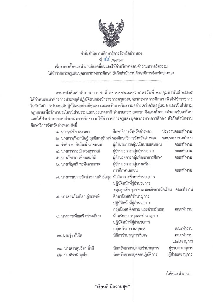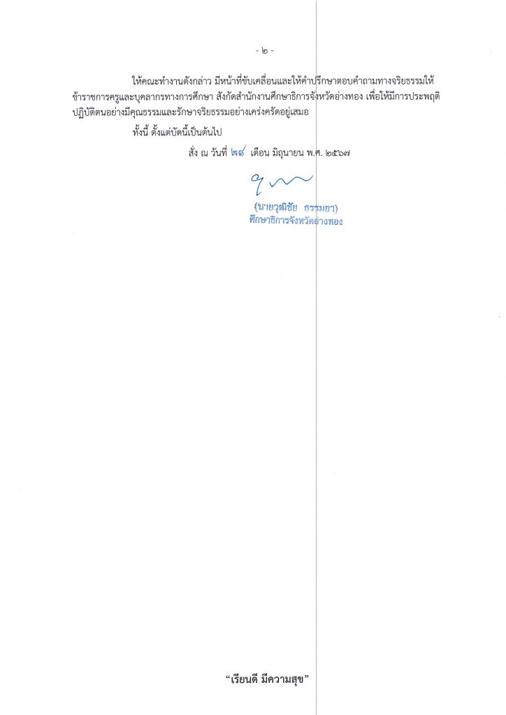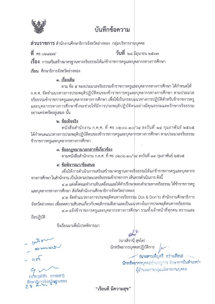 การขับเคลื่อนจริยธรรม 10 กรกฎาคม 256711 กรกฎาคม 2024 atg peo ITA 2567 บันทึกและคำสั่งแต่งตั้งคณะกรรมการขับเคลื่อนและให้คำปรึกษาตอบคำถามจริยธรรม แนวทางประพฤติตนทางจริยธรรม Dos and Don’ts สำนักงานศึกษาธิการจังหวัดอ่างทอง โครงการที่มีการสอดแทรกสาระด้านจริยธรรมของเจ้าหน้าที่ของรัฐในกิจกรรมเสริมสร้างจริยธรรม atg peo