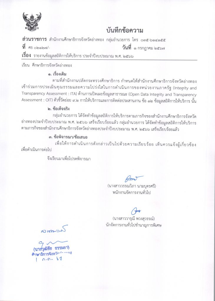 ข้อมูลเชิงสถิติการให้บริการ 10 กรกฎาคม 256715 กรกฎาคม 2024 atg peo ITA 2567 รายงานข้อมูลสถิติการให้บริการ ประจำปีงบประมาณ พ.ศ. 2566 ข้อมูลการให้บริการผ่านช่องทาง walk-in ข้อมูลการให้บริการผ่านช่องทาง E-Service atg peo