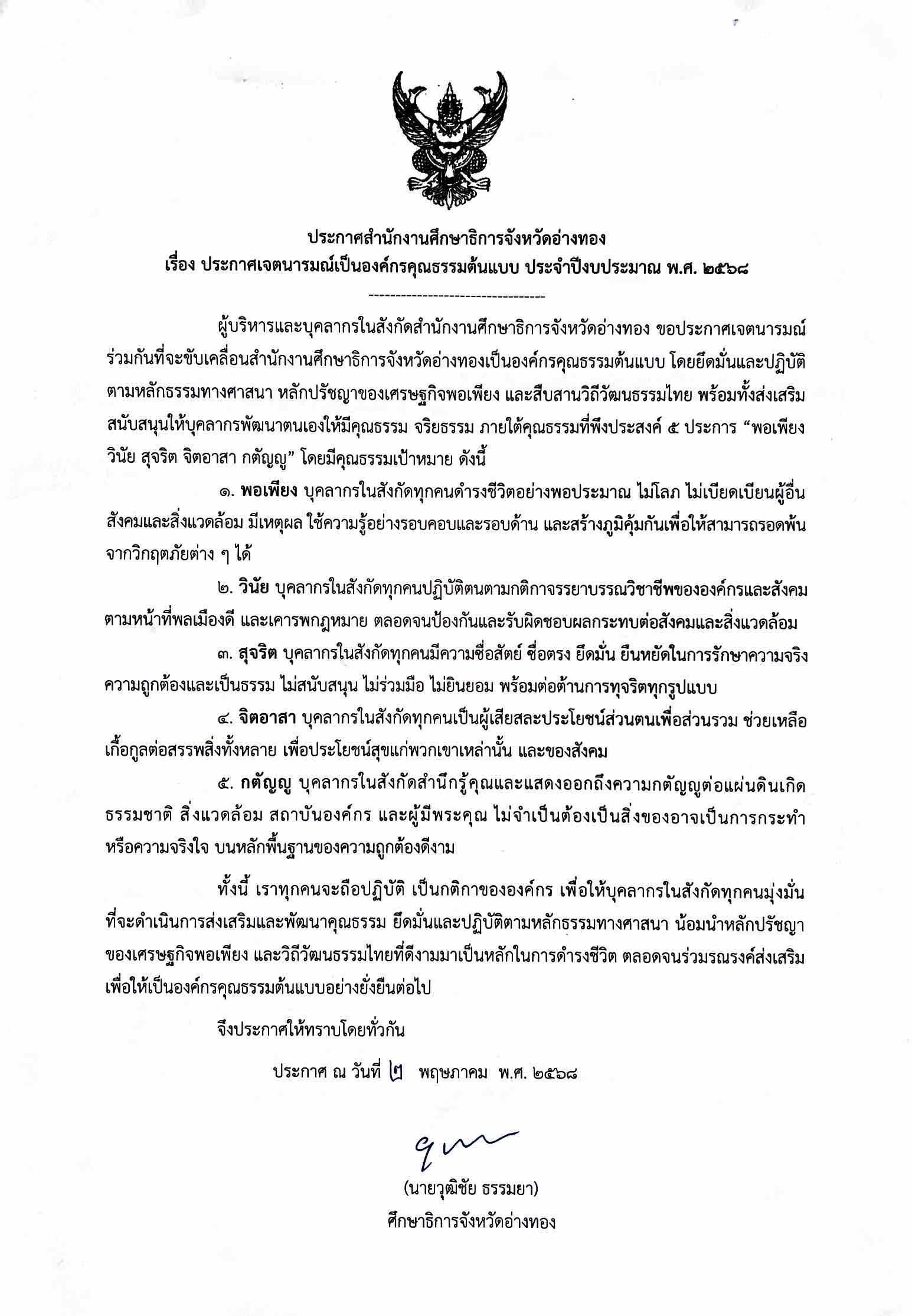 ประกาศเจตนารมณ์เป็นองค์กรคุณธรรมต้นแบบ ประจำปีงบประมาณ พ.ศ. 2568 29 พฤษภาคม 256829 พฤษภาคม 2025 atg peo atgpeo atg peo
