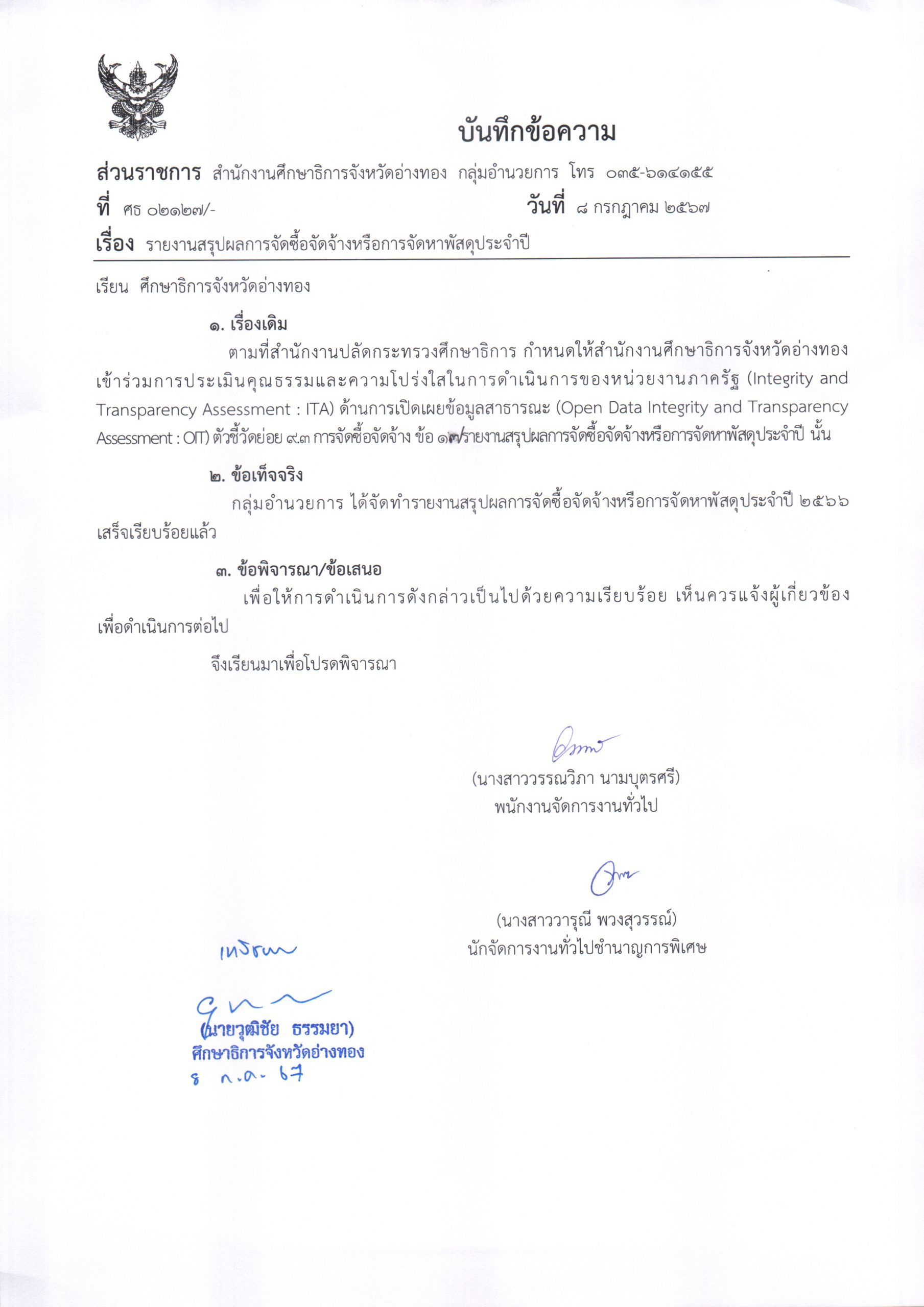 • รายงานสรุปผลการจัดซื้อจัดจ้างหรือการจัดหาพัสดุประจำปี