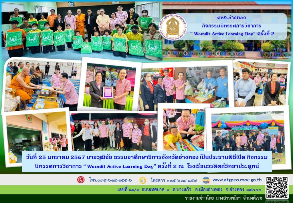 ศธจ.อ่างทอง กิจกรรมนิทรรศการวิชาการ “ Woradit Active Learning Day” ครั้งที่ 2 25 มกราคม 256731 มกราคม 2024 atg peo ภาพกิจกรรม ศธจ.อ่างทอง วันที่ 25 มกราคม 2567 นายวุฒิชัย ธรรมยา ศึกษาธิการจังหวัดอ่างทอง เป็นประธานพิธีเปิด กิจกรรมนิทรรศการวิชาการ “ Woradit Active Learning Day” ครั้งที่ 2 ณ โรงเรียนวรดิตถ์วิทยาประสูทน์ atg peo