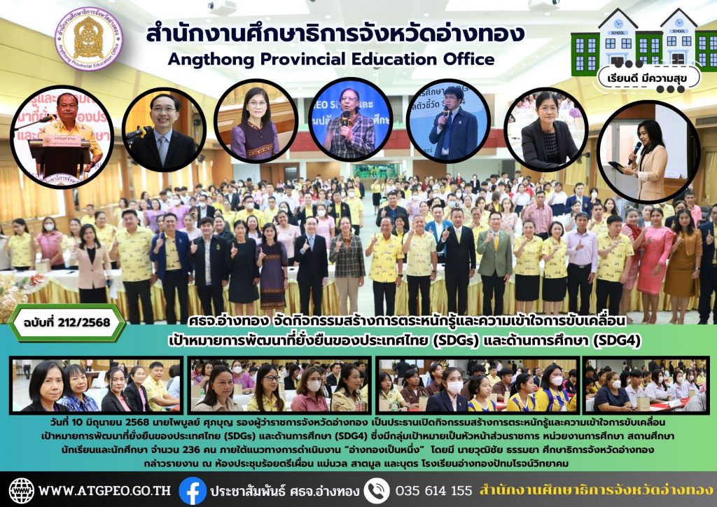 ศธจ.อ่างทอง กิจกรรมสร้างการตระหนักรู้และความเข้าใจการขับเคลื่อนเป้าหมายการพัฒนาที่ยั่งยืนของประเทศไทย (SDGs) และด้านการศึกษา (SDG4)