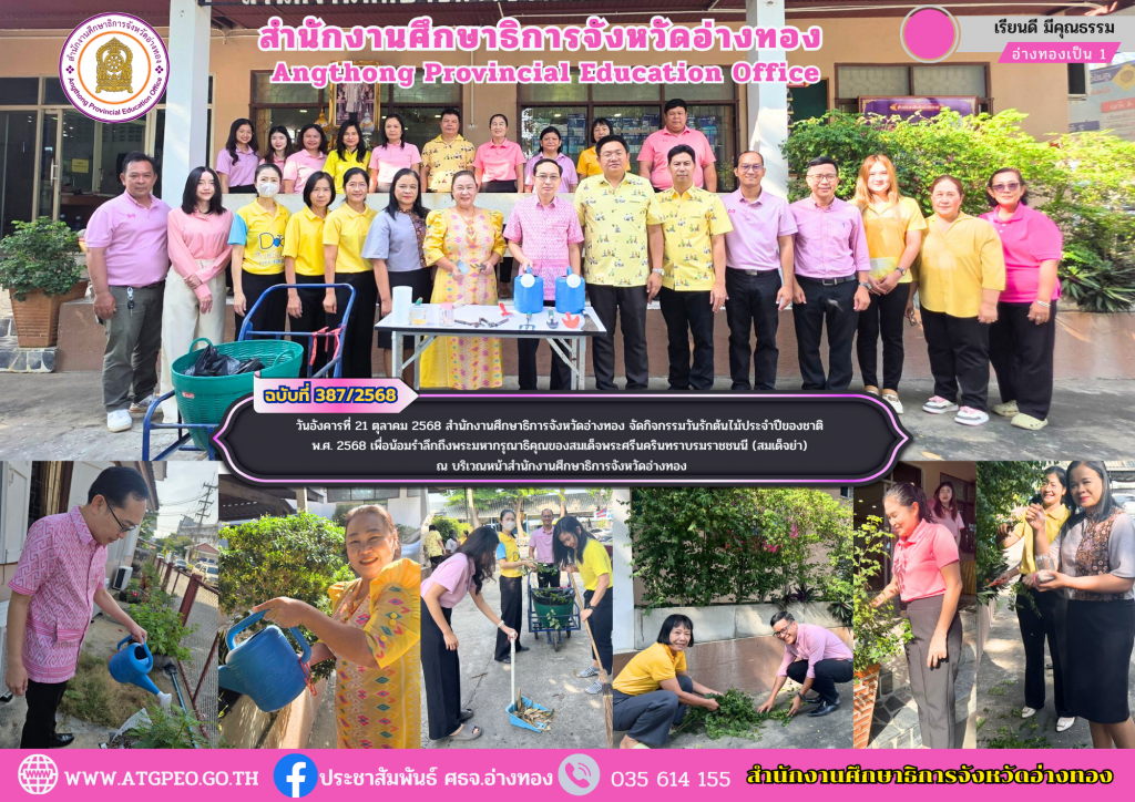 ศธจ.อ่างทอง จัดกิจกรรมวันรักต้นไม้ประจำปีของชาติ พ.ศ. 2568 เพื่อน้อมรำลึกถึงพระมหากรุณาธิคุณของสมเด็จพระศรีนครินทราบรมราชชนนี (สมเด็จย่า) 21 ตุลาคม 256828 ตุลาคม 2025 atg peo ภาพกิจกรรม ศธจ.อ่างทอง วันอังคารที่ 21 ตุลาคม 2568 สำนักงานศึกษาธิการจังหวัดอ่างทอง จัดกิจกรรมวันรักต้นไม้ประจำปีของชาติ พ.ศ. 2568 เพื่อน้อมรำลึกถึงพระมหากรุณาธิคุณของสมเด็จพระศรีนครินทราบรมราชชนนี (สมเด็จย่า) ณ บริเวณหน้าสำนักงานศึกษาธิการจังหวัดอ่างทอง atg peo
