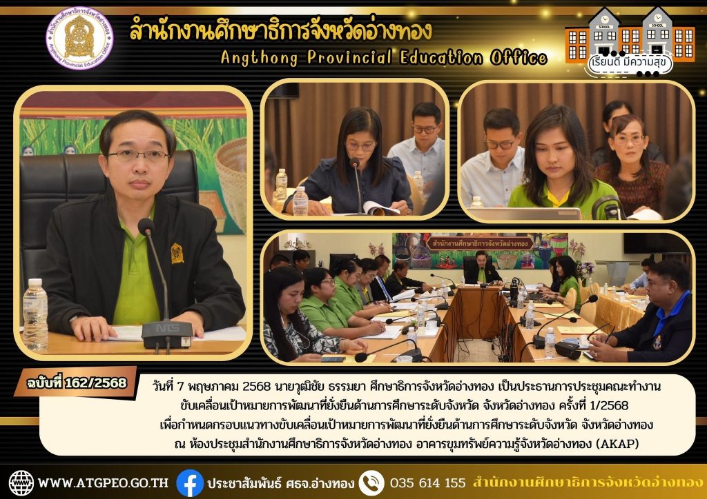 วันที่ 7 พฤษภาคม 2568 นายวุฒิชัย ธรรมยา ศึกษาธิการจังหวัดอ่างทอง เป็นประธานการประชุมคณะทำงาน ขับเคลื่อนเป้าหมายการพัฒนาที่ยั่งยืนด้านการศึกษาระดับจังหวัด จังหวัดอ่างทอง ครั้งที่ 1/2568 เพื่อกำหนดกรอบแนวทางขับเคลื่อนเป้าหมายการพัฒนาที่ยั่งยืนด้านการศึกษาระดับจังหวัด จังหวัดอ่างทอง ณ ห้องประชุมสำนักงานศึกษาธิการจังหวัดอ่างทอง อาคารขุมทรัพย์ความรู้จังหวัดอ่างทอง (AKAP)