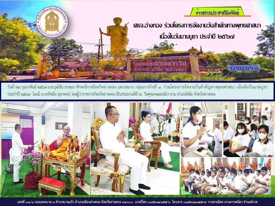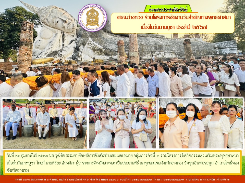 ศธจ.อ่างทอง ร่วมโครงการจัดงานวันสำคัญทางศาสนาเนื่องในวันมาฆบูชา 24 กุมภาพันธ์ 256729 กุมภาพันธ์ 2024 atg peo ภาพกิจกรรม ศธจ.อ่างทอง FacebookFacebookXXLINELine atg peo
