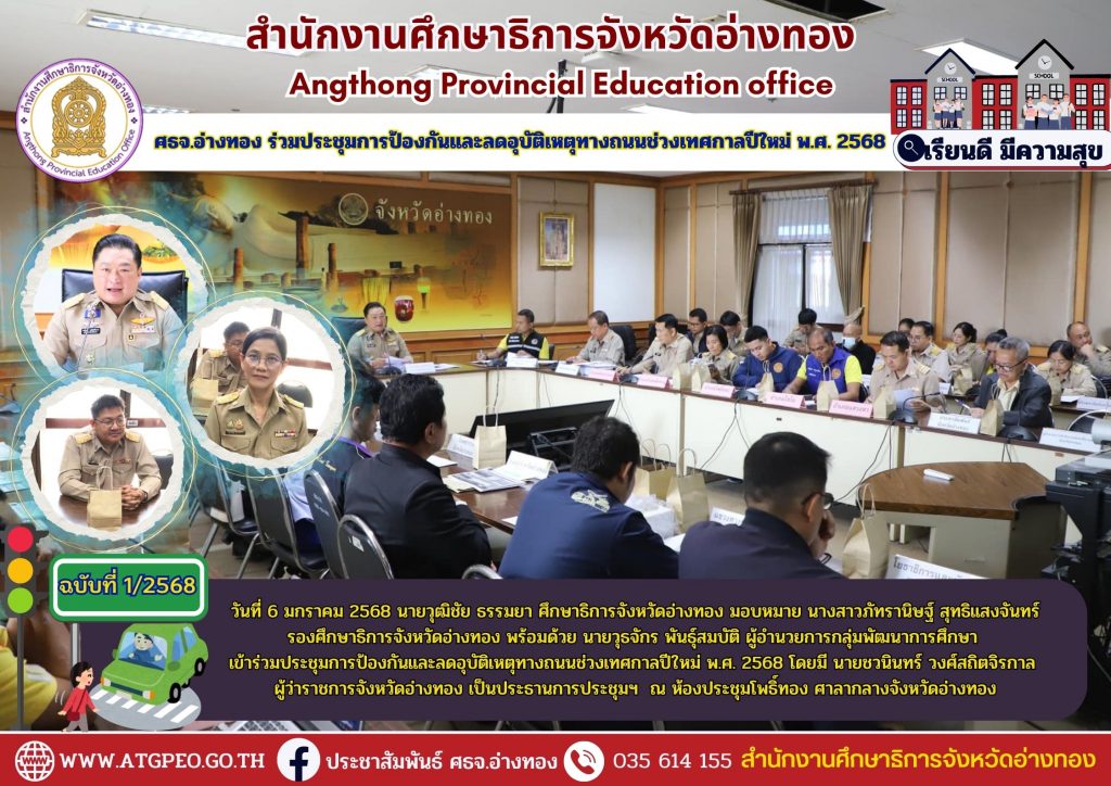 เข้าร่วมประชุมการป้องกันและลดอุบัติเหตุทางถนนช่วงเทศกาลปีใหม่ พ.ศ. 2568 โดยมี นายชวนินทร์ วงศ์สถิตจิรกาล ผู้ว่าราชการจังหวัดอ่างทอง เป็นประธานการประชุมฯ ณ ห้องประชุมโพธิ์ทอง ศาลากลางจังหวัดอ่างทอง