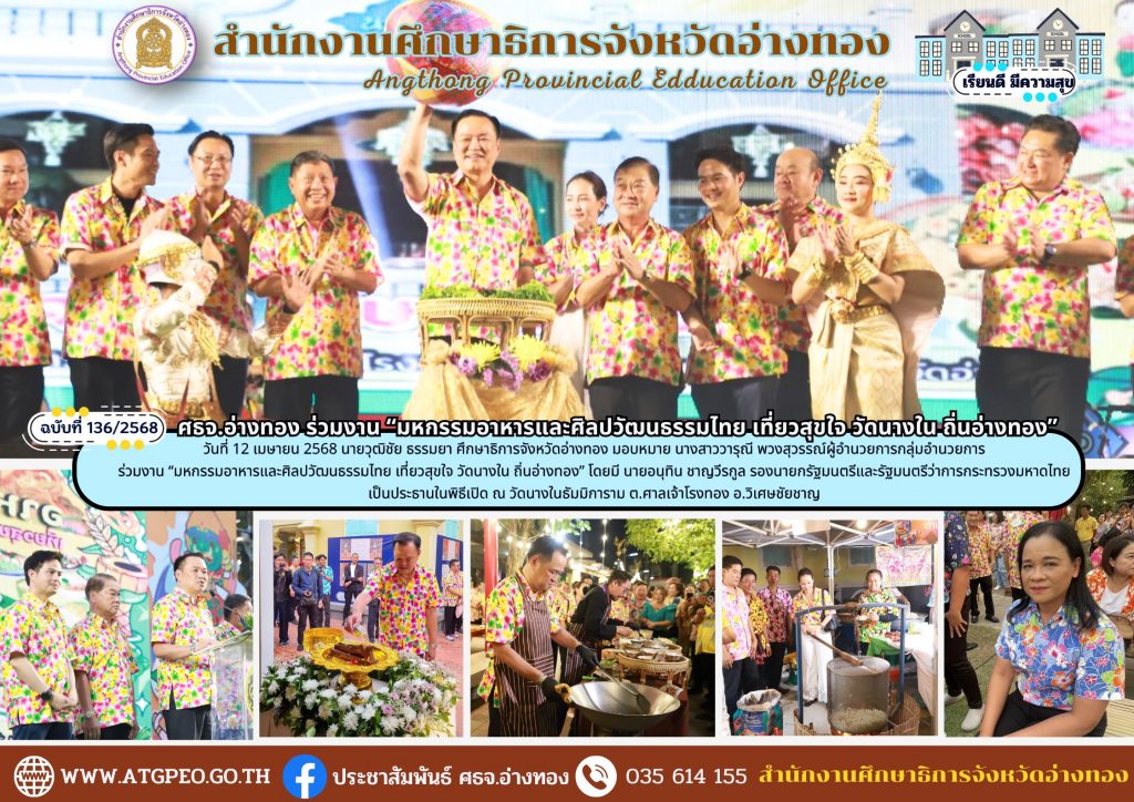 ศธจ.อ่างทอง ร่วมงาน “มหกรรมอาหารและศิลปวัฒนธรรมไทย เที่ยวสุขใจ วัดนางใน ถิ่นอ่างทอง”