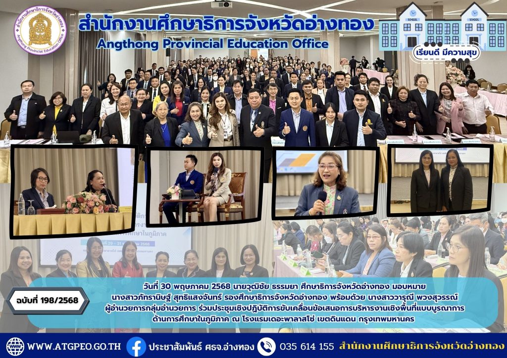 ศธจ.อ่างทอง ร่วมประชุมเชิงปฏิบัติการขับเคลื่อนข้อเสนอการบริหารงานเชิงพื้นที่แบบบูรณาการ ด้านการศึกษาในภูมิภาค