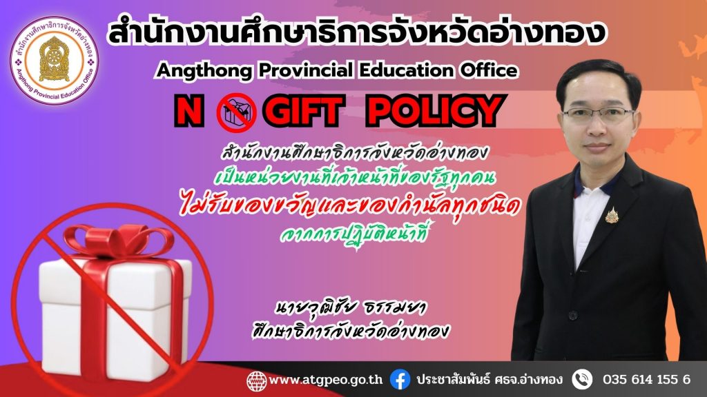 ประกาศเจตนารมณ์และสร้างวัฒนธรรมตามนโยบาย No Gift Policy จากการปฏิบัติหน้าที่
