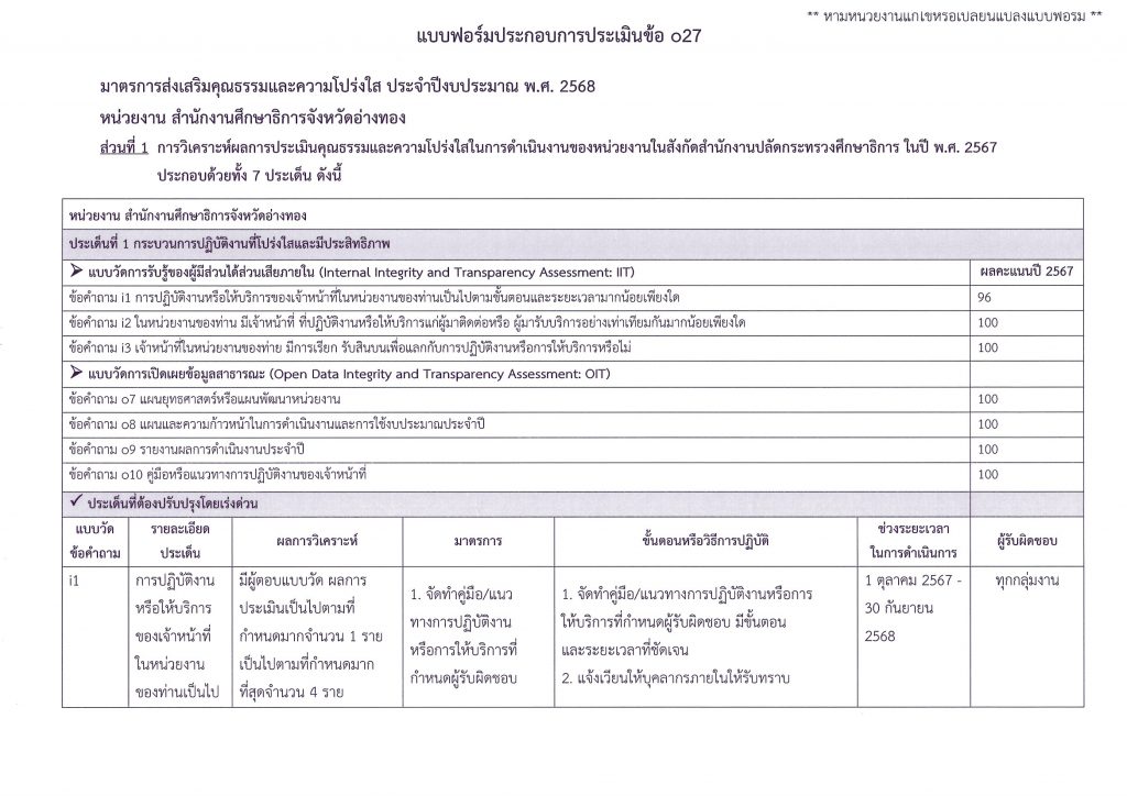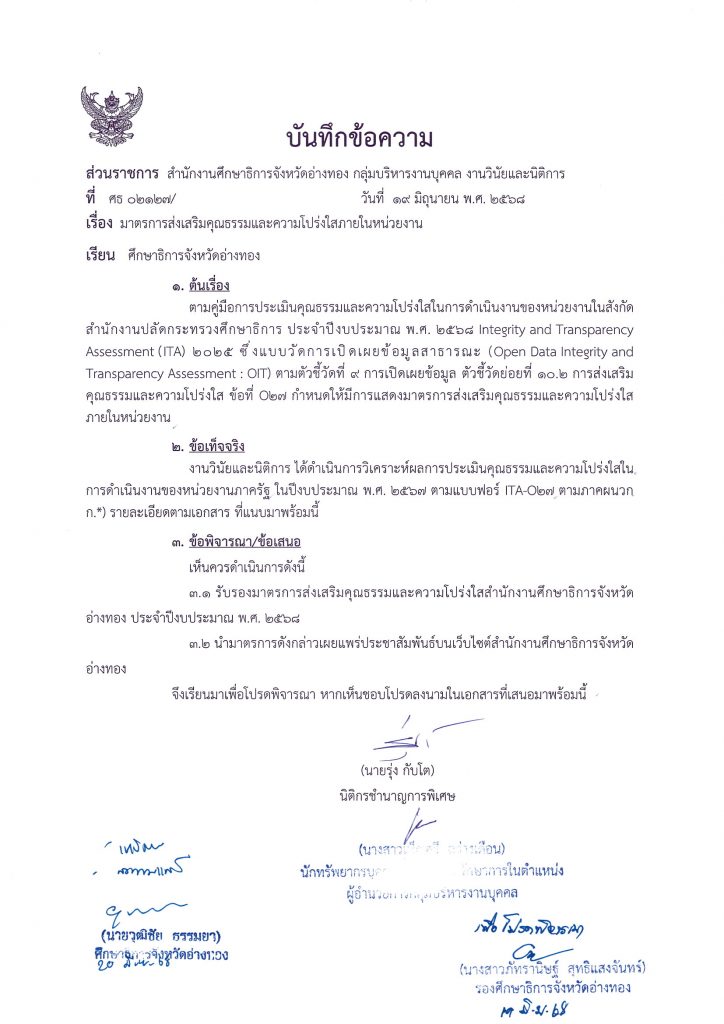 มาตรการส่งเสริมคุณธรรมและความโปร่งใสภายในหน่วยงาน