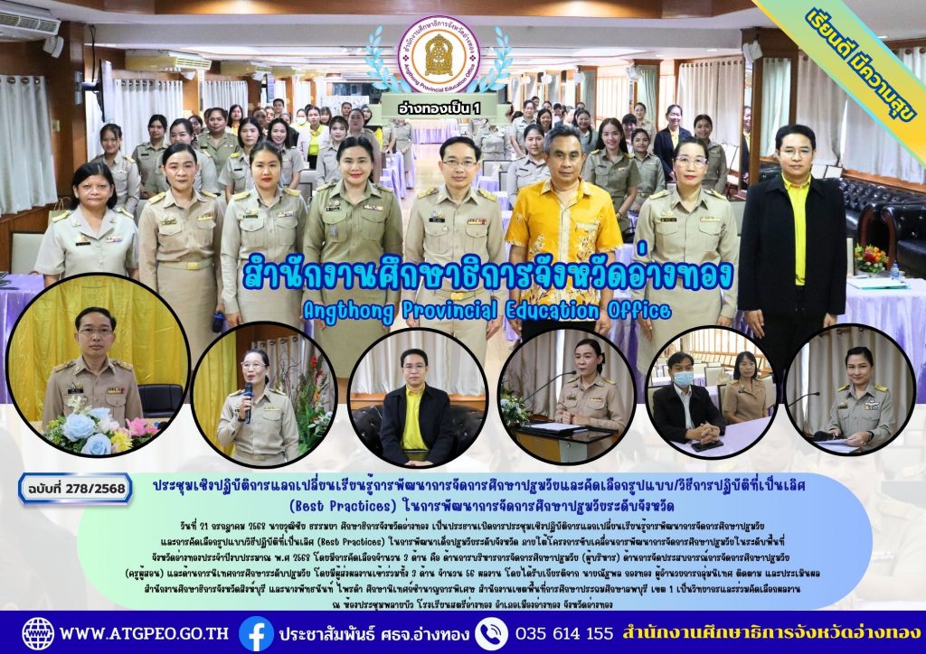 วันที่ 21 กรกฎาคม 2568 นายวุฒิชัย ธรรมยา ศึกษาธิการจังหวัดอ่างทอง เป็นประธานเปิดการประชุมเชิงปฏิบัติการแลกเปลี่ยนเรียนรู้การพัฒนาการจัดการศึกษาปฐมวัยและการคัดเลือกรูปแบบวิธีปฏิบัติที่เป็นเลิศ (Best Practices) ในการพัฒนาเด็กปฐมวัยระดับจังหวัด ภายใต้โครงการขับเคลื่อนการพัฒนาการจัดการศึกษาปฐมวัยในระดับพื้นที่จังหวัดอ่างทองประจำปีงบประมาณ พ.ศ 2568 โดยมีการคัดเลือกจำนวน 3 ด้าน คือ ด้านการบริหารการจัดการศึกษาปฐมวัย (ผู้บริหาร) ด้านการจัดประสบการณ์การจัดการศึกษาปฐมวัย (ครูผู้สอน) และด้านการนิเทศการศึกษาระดับปฐมวัย โดยมีผู้ส่งผลงานเข้าร่วมทั้ง 3 ด้าน จำนวน 56 ผลงาน โดยได้รับเกียรติจาก นายณัฐพล กองทอง ผู้อำนวยการกลุ่มนิเทศ ติดตาม และประเมินผลสำนักงานศึกษาธิการจังหวัดสิงห์บุรี และนางพัทธนันท์ ไพรดำ ศึกษานิเทศก์ชำนาญการพิเศษ สำนักงานเขตพื้นที่การศึกษาประถมศึกษาลพบุรี เขต 1 เป็นวิทยากรและร่วมคัดเลือกผลงาน ณ ห้องประชุมพลายบัว โรงเรียนสตรีอ่างทอง อำเภอเมืองอ่างทอง จังหวัดอ่างทอง