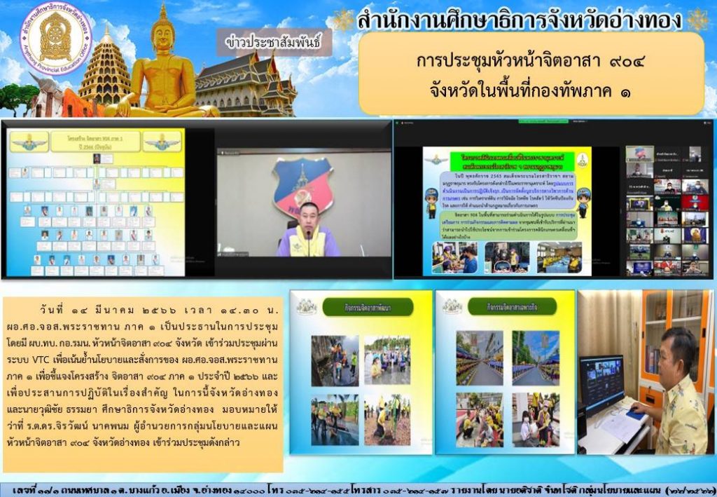 การประชุมหัวหน้าจิตอาสา 904 จังหวัดในพื้นที่กองทัพภาค 1 14 มีนาคม 256616 มีนาคม 2023 พนิดา จำนงค์เวช ภาพกิจกรรม ศธจ.อ่างทอง พนิดา จำนงค์เวช