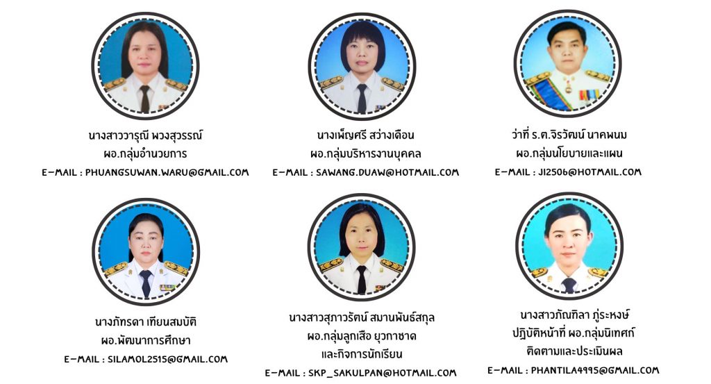 - 2562 นักวิชาการศึกษา 6 ศูนย์ขับเคลื่อนการศึกษาจังหวัดชายแดนภาคใต้ สป.ศธ ปี 2564 ผอ.กลุ่มพัฒนาการศึกษา สนง.ศธจ.อ่างทอง
