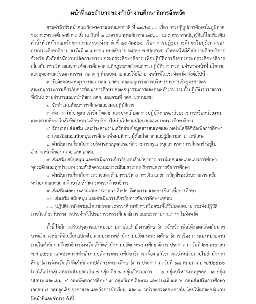 หน้าที่และอำนาจ 26 พฤษภาคม 256626 กรกฎาคม 2023 atg peo ITA หน้าที่และอำนาจของศึกษาธิการจังหวัดตามพระราชบัญญัติระเบียบข้าราชการครูและบุคลากรทางการศึกษา พ.ศ. ๒๕๔๗ และแก้ไขเพิ่มเติม กำหนดไว้ตามคำสั่งหัวหน้าคณะรักษาความสงบแห่งชาติ ที่ ๑๙/๒๕๖๐ ประกาศ การแบ่งหน่วยงานภายในสำนักงานศึกษาธิการจังหวัด ประจำปี 2560 ประกาศ แบ่งหน่วยงานภายในสำนักงานศึกษาธิการจังหวัด ประจำปี 2566 คำสั่งมอบหมายงานข้าราชการและลูกจ้างในสำนักงานศึกษาธิการจังหวัดอ่างทอง atg peo
