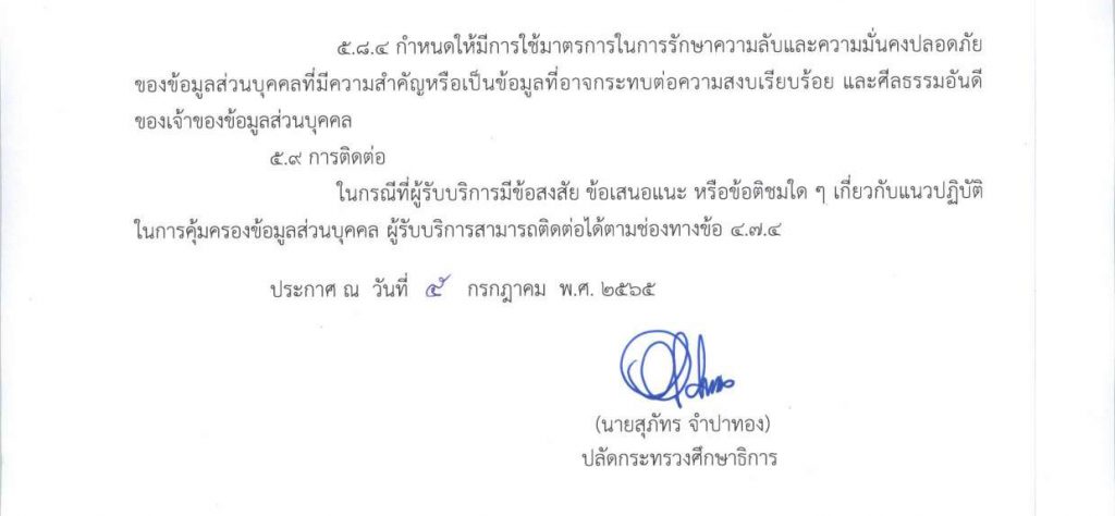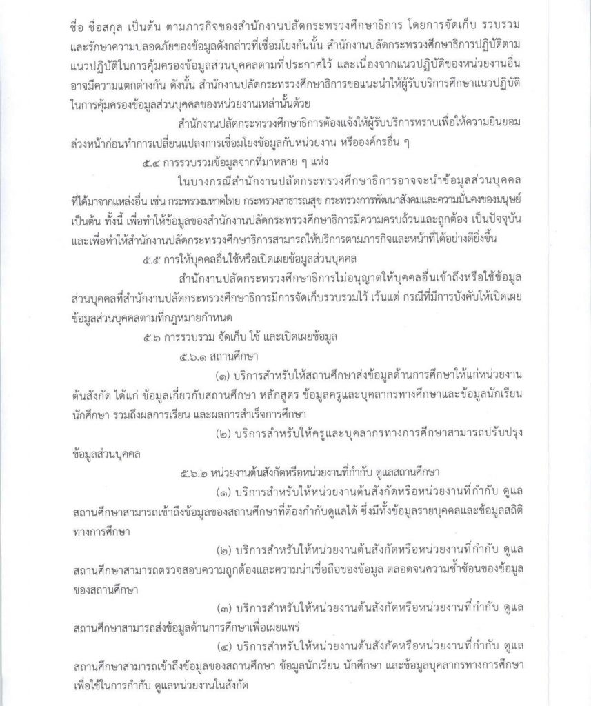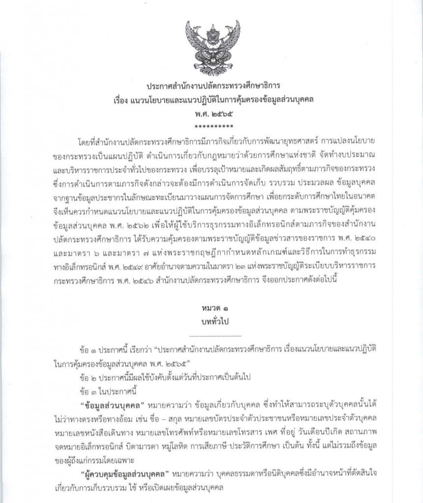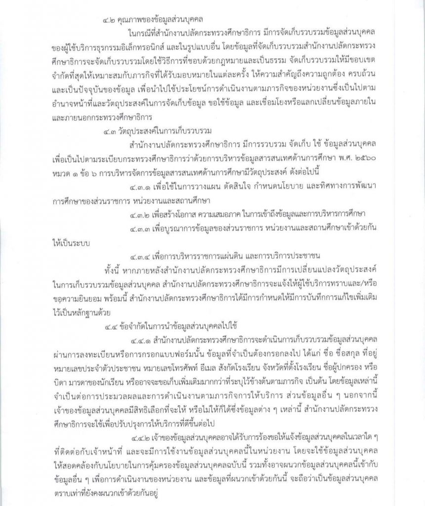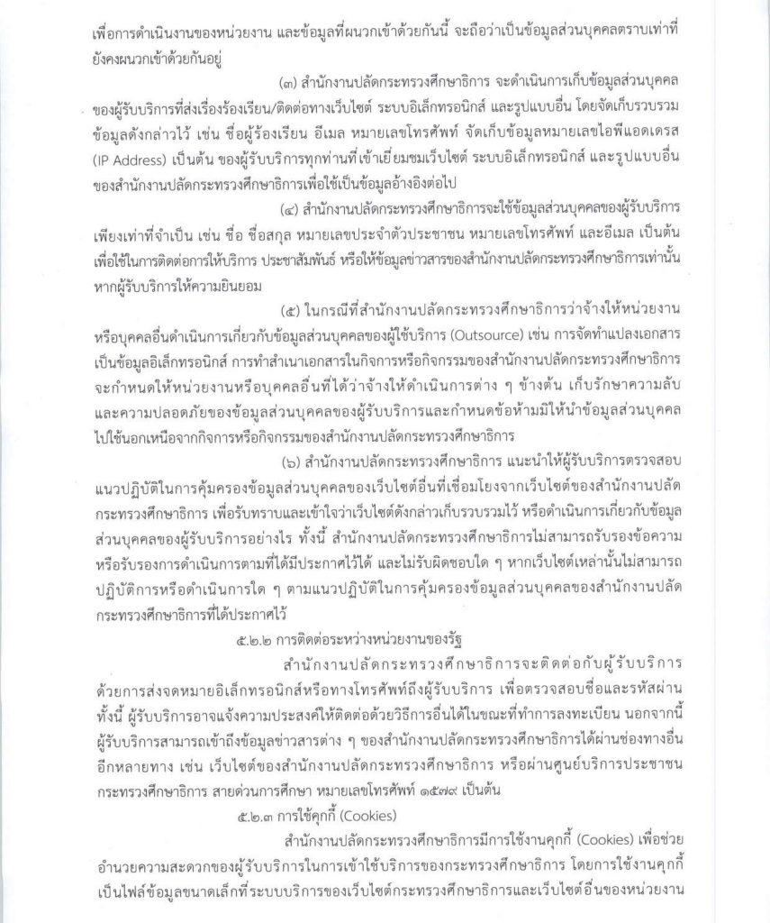 • นโยบายข้อมูลส่วนบุคคลของสำนักงานปลัดกระทรวงศึกษาธิการ