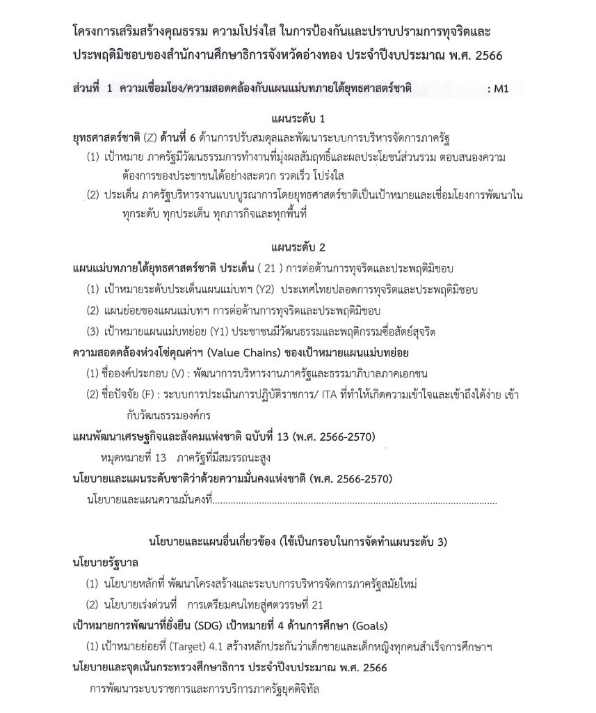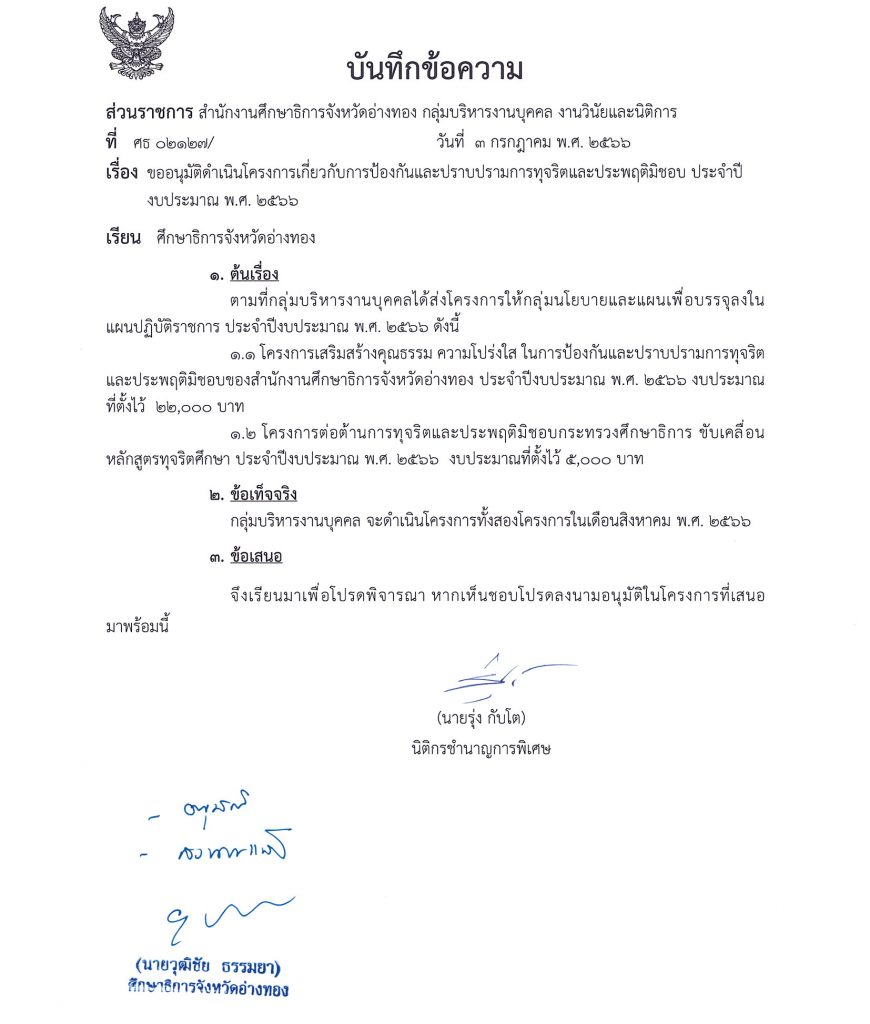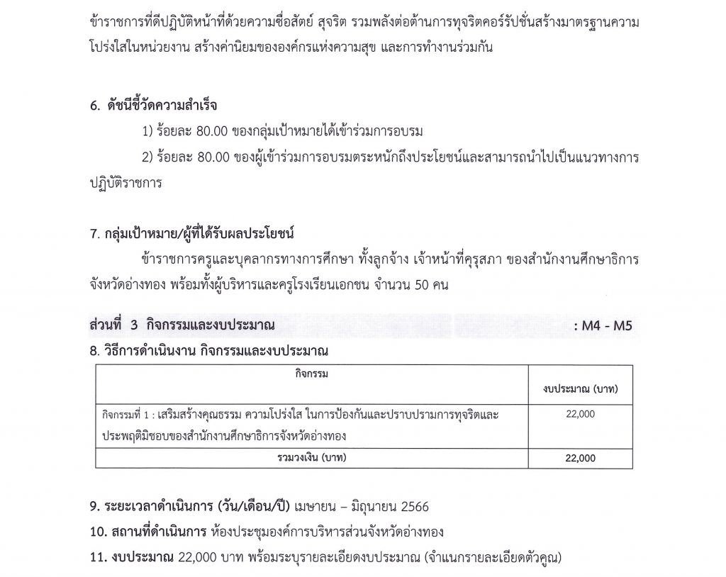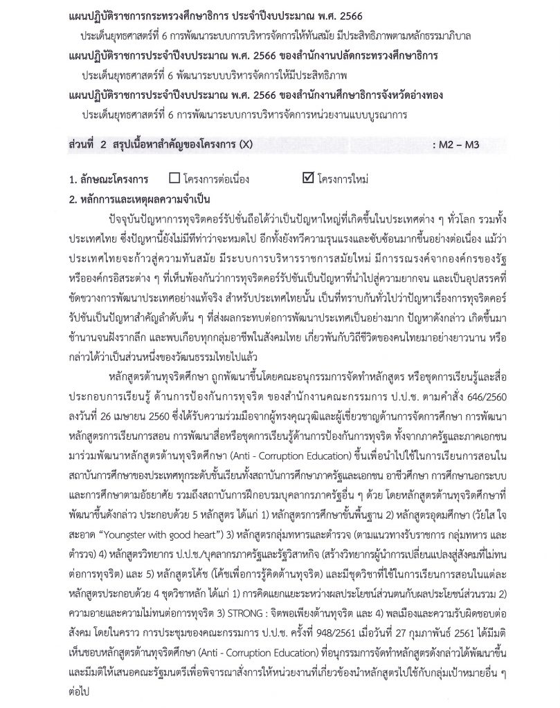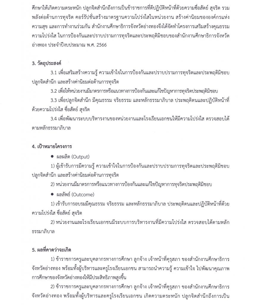 • โครงการเสริมสร้างคุณธรรม ความโปร่งใส ในการป้องกันและปราบปรามการทุจริต และประพฤติมิชอบ ประจำปีงบประมาณ 2566