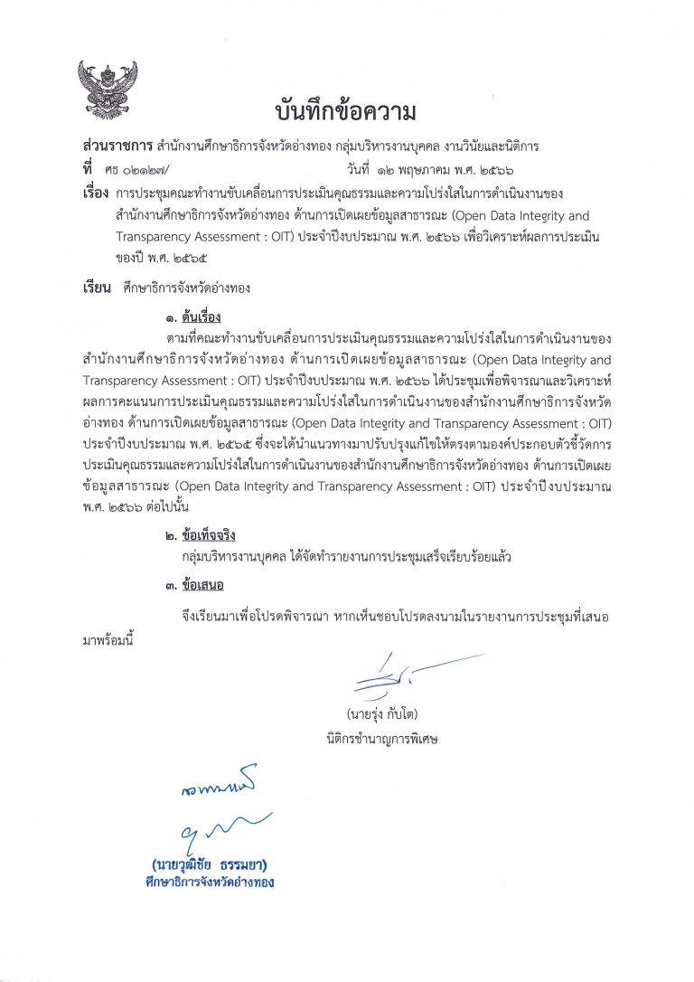 มาตรการส่งเสริมคุณธรรมและความโปรงใสภายในหน่วยงาน 26 พฤษภาคม 256630 กรกฎาคม 2023 atg peo ITA รายงานการประชุมคณะทำงานขับเคลื่อน OIT ประจำปีงบประมาณ 2566 atg peo