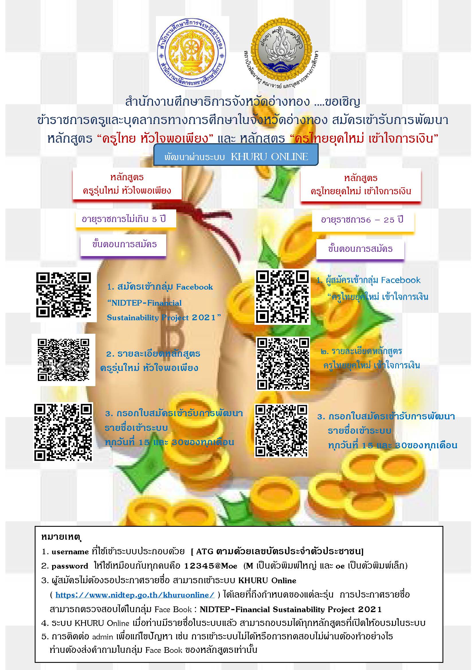 ขอเชิญข้าราชการครูและบุคลากรทางการศึกษา เข้าร่วมพัฒนา หลักสูตร ครูรุ่นใหม่ หัวใจพอเพียง และหลักสูตร ครูไทยยุคใหม่ เข้าใจการเงิน